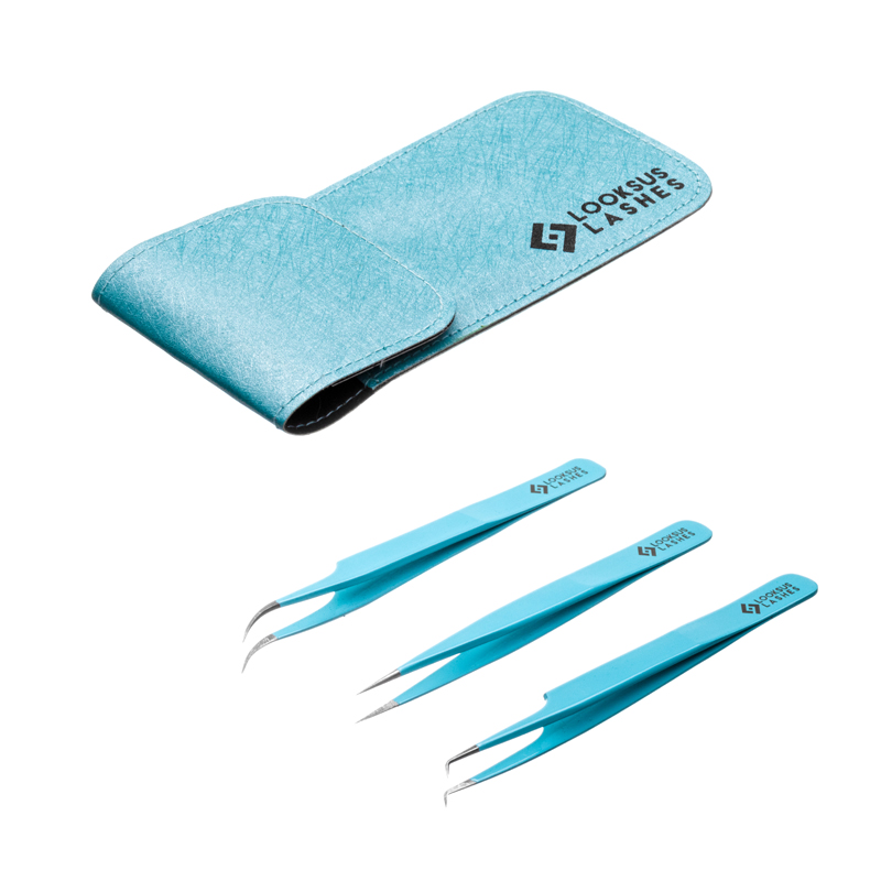 Tweezers set with case – blue
